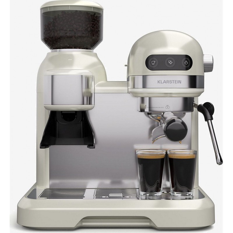 Vivez des moments de plaisir comme dans votre café préféré: comme un pro, car la cafetière à porte-filtre Bella Café de Klarstein fera de vous un barista professionnel. Contrôle et saveur totale: de la mouture des grains de café à la mousse de lait, la machine à expresso Bella Café vous permet de tout contrôler. Le broyeur intégré d&-39 une capacité de 200g comprend des réglages de degré et de durée de mouture. Le réservoir d&-39 eau amovible de 1,4 litre vous permet de profiter de nombreux moments revigorants au quotidien. Grâce à l&-39 ingénieux système de chauffage rapide avec Thermo Block, l&-39 eau chauffe rapidement et l&-39 expresso est prêt en quelques minutes. Seul ou à deux: vous avez le choix, car le bec verseur est conçu pour 2 tasses. Réglez la bonne quantité par simple pression sur un bouton. Grâce à la fonction anti-gouttes, aucune goutte ne déborde. Et la boisson est toujours à bonne température car vous pouvez préchauffer les tasses sur le dessus. Une crème mousseuse vient compléter le plaisir sophistiqué du café. À cet effet, la cafetière Bella Café deKlarsteinest équipée d&-39 une buse à lait mobile. Celle-ci fait apparaître une couronne de mousse particulièrement ferme avec une forte pression. Vous pouvez ainsi préparer cappuccino et latte macchiato en qualité barista. La machine à porte-filtre de haute qualité ne se contente pas de vous offrir des moments de plaisir revigorants, elle vous facilite également la vie au quotidien grâce à sa commodité. Elle se nettoie rapidement et le bac de récupération et la buse à lait se retirent facilement. Elle est également très sûre et fiable avec une protection contre la surchauffe et la surpression. Fine et élégante, elle s&-39 intègre à merveille dans la cuisine tout en diffusant un charme rétro des années 50. Découvrez maintenant le plaisir de la qualité barista chez vous! Offrez-vous la machine à expresso Klarstein Bella Café et dégustez des spécialités de café aromatiques sur simple pression d&-39 un bouton. Top Features: La qualité Barista à la maison: Avec une pression de pompe de 19 bars pour un arôme intense et une crème parfaite. Fraîchement moulu: Broyeur conique intégré d&-39 une capacité de 200g et 10 niveaux réglables pour un plaisir individuel du café. Un plaisir rapide: Technologie Thermo Block pour un chauffage rapide et un contrôle précis de la température - le manomètre intégré sert à surveiller la pression d&-39 infusion optimale Double plaisir: Distributeur pour jusqu&-39 à 2 tasses en même temps, parfait pour des moments de café partagés. Mousse de lait parfaite: Mousseur à lait mobile pour un cappuccino et un latte macchiato crémeux de qualité barista. Caractéristiques: Pression de la pompe: 19 bars Matériau: acier inoxydable & plastique Réservoir d&-39 eau: 1,4 litres Puissance: 1550W broyeur à café avec 10 niveaux et quantité de café réglable Capacité du broyeur: 200g Alimentation électrique: 220-240 V~ | 50/60 Hz Inclus dans la livraison: 1xmachine à expresso 1xporte-filtre 2xfiltre 1xcuillère doseuse 1xembout pour café en grains 1xtasseur Mode d&-39 emploi en français Dimension: Dimensions: env. 34,5x31x32cm (LxHxP) Longueur du câble: env. 1m Poids: env. 7,5Kg. Produit neuf dans son emballage d'origine bénéficiant de la garantie originale du fabricant. EAN 4060656534225.