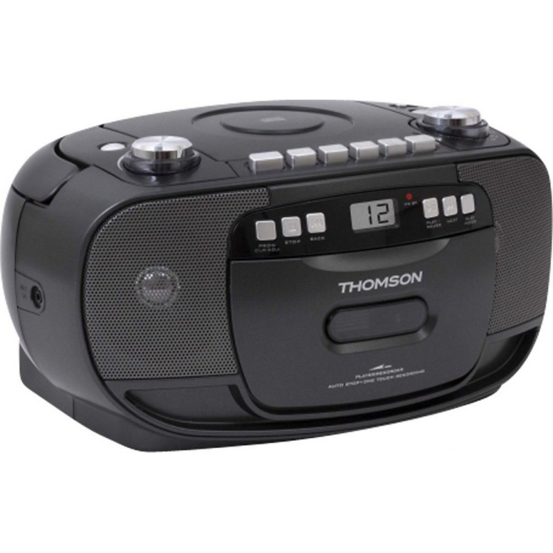 Radio CD THOMSON RK200CD: Un Classique Moderne Design Élégant et Fonctionnalités Complètes Le Radio CD THOMSON RK200CD se distingue par son design sobre et élégant qui s&-39 intégrera parfaitement dans tout type d&-39 intérieur. Avec ses dimensions compactes de 29x19x15cm, cet appareil portable noir est à la fois discret et facilement transportable. Il offre une puissance sonore de 5W, idéale pour une écoute confortable dans une chambre ou un petit salon. Le tuner analogique FM permet de capter les stations radio avec clarté, tandis que le lecteur CD et le lecteur/enregistreur de cassette offrent une expérience audio polyvalente. L&-39 affichage rétro éclairé assure une utilisation aisée même dans des conditions de faible luminosité, et la connectivité est renforcée grâce à une entrée AUX IN 3.5mm, permettant de connecter d&-39 autres sources audio. Flexibilité d&-39 Alimentation et Facilité d&-39 Utilisation Le THOMSON RK200CD est conçu pour s&-39 adapter à tous les modes de vie, avec une alimentation possible via le secteur 230V ou par piles 6x1.5V (LR14) pour ceux qui souhaitent l&-39 emporter en déplacement (piles non fournies). Cette flexibilité d&-39 alimentation, associée à un poids de seulement 2.2Kg, rend ce radio CD particulièrement pratique. Le colisage de 4 unités et le poids total de 9.7Kg pour le carton facilitent l&-39 achat en gros pour les revendeurs. La marque THOMSON, gage de qualité et d&-39 innovation, est utilisée sous licence par BIGBEN INTERACTIVE, assurant aux utilisateurs une expérience audio fiable et agréable avec ce modèle RK200CD. Produit neuf dans son emballage d'origine bénéficiant de la garantie originale du fabricant. EAN 3499550329032.