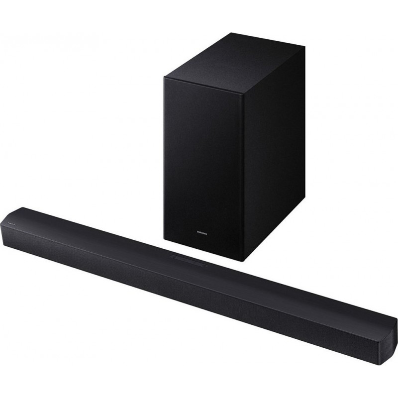 Barre de Son Samsung HW-B46CF: Une Expérience Audio Immersive Une Qualité Sonore Exceptionnelle La barre de son Samsung HW-B46CF, dotée d&-39 un système 2.1 canaux, transforme votre salon en un véritable cinéma. Équipée de 3 haut-parleurs et d&-39 un caisson de basse sans fil de 6,5 pouces, elle offre des basses profondes et puissantes. Grâce à la technologie Dolby Audio et DTS Virtual:X, plongez dans un environnement sonore tridimensionnel où le son se déplace autour de vous. Le mode Bass Boost accentue encore plus les basses pour une expérience sonore enrichie. Profitez d&-39 un son surround immersif qui complète parfaitement votre téléviseur. Connectivité et Fonctionnalités Avancées La barre de son HW-B46CF s&-39 intègre facilement à votre espace multimédia grâce à sa connectivité Bluetooth et son port HDMI ARC. Partagez vos contenus sans fil et bénéficiez d&-39 une qualité audio optimale sans câbles encombrants. La télécommande unique simplifie le contrôle de votre barre de son et de votre téléviseur. Pour les amateurs de jeux, le mode Gaming ajuste automatiquement les paramètres sonores pour une immersion totale. De plus, le mode Nuit réduit le volume et compresse les basses pour ne pas déranger votre entourage. Avec ses multiples formats audio compatibles, dont MP3, AAC, et FLAC, cette barre de son répond à toutes vos exigences sonores. Produit neuf dans son emballage d'origine bénéficiant de la garantie originale du fabricant. EAN 8806097431275.