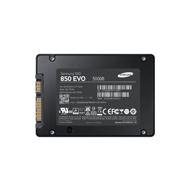 Samsung Stockage Flash SSD 500Go série 850 EVO (2,5" - SATA - interne). Stockage. Marque Samsung. Matériel neuf non déballé, garantie totale 1 an. Référence fabricant MZ-75E500B/EU. EAN 8806086523035.