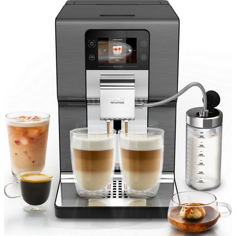 Expresso Broyeur KRUPS EA879NE0: L&-39 Expérience Café à Domicile Technologie Intuition Experience Hot& Cold Le KRUPS EA879NE0 révolutionne la préparation du café à domicile avec sa technologie Intuition Experience Hot& Cold. Cette machine espresso automatique propose 36 recettes chaudes et froides, offrant une personnalisation complète pour satisfaire toutes les envies. Grâce à son écran tactile immersif, l&-39 accès aux boissons est simplifié, permettant de préparer des cafés classiques comme le ristretto ou l&-39 espresso, ainsi que des créations originales telles que le café nitro ou le latte glacé. La technologie Cold Brew Aroma garantit des boissons glacées riches en saveurs, tandis que le système One Touch Cappuccino assure une mousse de lait parfaite pour les boissons lactées. Avec une capacité de 3L pour le réservoir d&-39 eau et un broyeur à grains doté de cônes métalliques, cette machine allie performance et praticité. Fonctionnalités Avancées et Entretien Simplifié Le KRUPS EA879NE0 se distingue par ses fonctionnalités avancées, telles que la préparation simultanée de deux tasses, idéale pour les matinées pressées. La personnalisation de l&-39 intensité du café, avec 4 niveaux de réglage, et la finesse de mouture ajustable sur 13 niveaux, permettent d&-39 adapter chaque boisson aux préférences individuelles. L&-39 entretien est facilité par un programme de nettoyage 100% automatique, incluant le rinçage des accessoires lait et la détection automatique du détartrage. Avec une puissance de 1550W et une pression de 15 bars, cette machine garantit une extraction optimale des arômes. Le design en métal brossé noir ajoute une touche d&-39 élégance à votre cuisine, tandis que la réparable pendant 15 ans assure une durabilité exceptionnelle. Produit neuf dans son emballage d'origine bénéficiant de la garantie originale du fabricant. EAN 3016661180347.