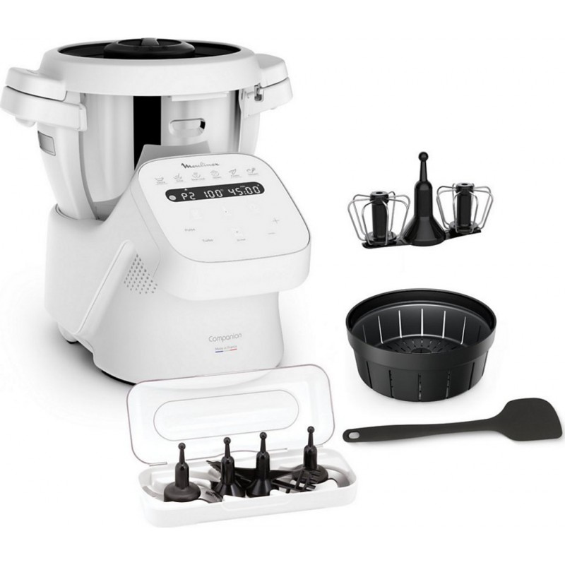 Robot Cuiseur MOULINEX Companion HF84A110: L&-39 Allié Parfait pour Votre Cuisine Fonctionnalités Polyvalentes et Performances Optimales Le Robot Cuiseur MOULINEX Companion HF84A110 est un appareil multifonction qui révolutionne la préparation culinaire grâce à ses 14 fonctions intégrées. Doté d&-39 une capacité XL, il permet de cuisiner pour jusqu&-39 à 10 personnes, idéal pour les grandes familles ou les réceptions. Avec ses 12 programmes automatiques et son mode manuel, il offre une flexibilité inégalée pour réaliser une variété de plats, de la découpe à la cuisson. Son double fouet et ses accessoires spécifiques, tels que le couteau hachoir et le panier vapeur, facilitent la préparation de recettes inspirantes disponibles sur l&-39 application My Moulinex. La puissance de 1 550W garantit une efficacité optimale, tandis que son design en noir et blanc s&-39 intègre harmonieusement dans toutes les cuisines. Avantages Pratiques et Confort d&-39 Utilisation Le Companion HF84A110 se distingue par son fonctionnement silencieux, permettant de cuisiner sans perturber le calme de votre maison. Sa capacité utile de 3L est parfaite pour préparer des plats généreux et savoureux. L&-39 appareil est conçu pour être facilement nettoyé grâce à ses composants compatibles lave-vaisselle, et son rangement est simplifié par une boîte dédiée aux accessoires. La sécurité est renforcée par un couvercle sécurisé qui se verrouille automatiquement. De plus, le robot est réparable pendant 15 ans, garantissant une durabilité exceptionnelle. Avec l&-39 application My Moulinex, explorez une infinité de recettes et profitez d&-39 un guide pas à pas pour des résultats parfaits à chaque utilisation. Produit neuf dans son emballage d'origine bénéficiant de la garantie originale du fabricant. EAN 3016661173844.
